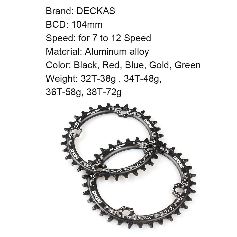 Deckas-platos y bielas para bicicleta de montaña 104BCD, platos y bielas, redondos, estrechos y anchos, 104BCD, 32T, 34T, 36T, 38T, 104 BCD