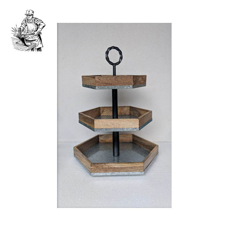 DECOR HAAT Exportación Directa India Soporte para Pasteles de Metal Galvanizado de 3 Niveles de Alta Calidad, Diseño Clásico Ecológico para Uso en el Hogar y Restaurantes