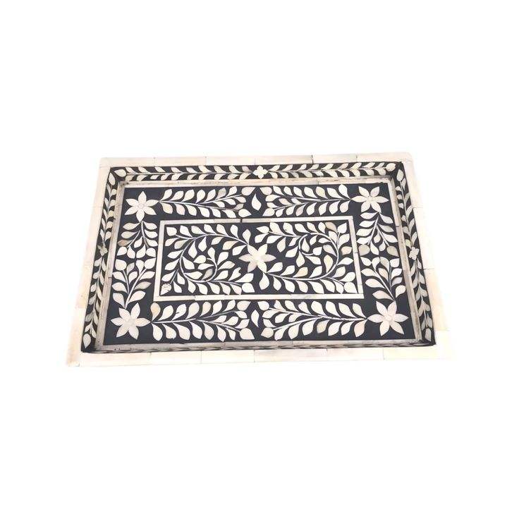 Bandeja decorativa con incrustaciones de hueso con patrones de diseño floral Bandeja para servir con incrustaciones de hueso para vajilla