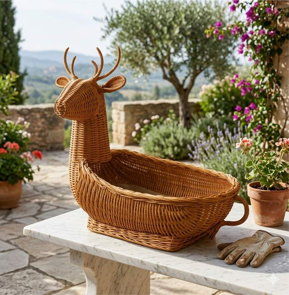 Cesta de Ratán Hecha a Mano con Diseño de Ciervo