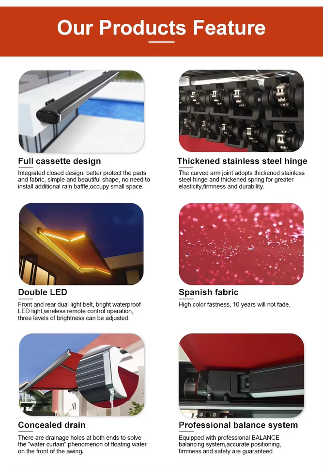 DEEZON Aluminio Terraza Parasol Toldos retráctiles Techo motorizado Toldo de casete completo