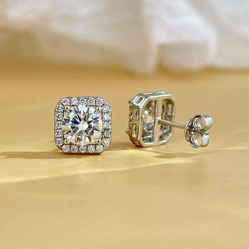 Nombre del Producto:Pendientes de botón de oro macizo de 14 quilates con halo de cojín de corte redondo