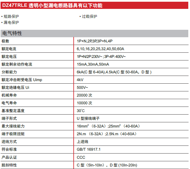 Nombre del producto:Disyuntor actuado actual residual transparente de DZ47TRLE
