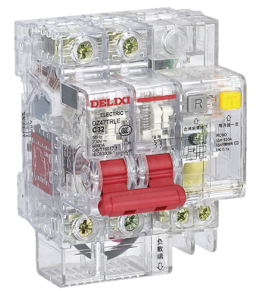 DELIXI alta calidad DZ47TRLE AC transparente corriente residual operada disyuntores hogar RCBO dispositivo de protección contra fugas