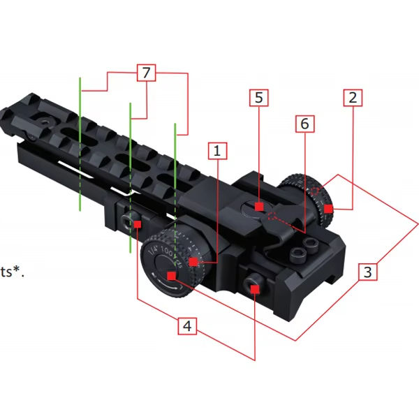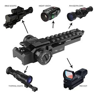 Montura Elevadora de Riel Picatinny de Metal DEM con Ajuste de Viento y Altura para Ópticas de Punto Rojo, Térmicas y Visión Nocturna