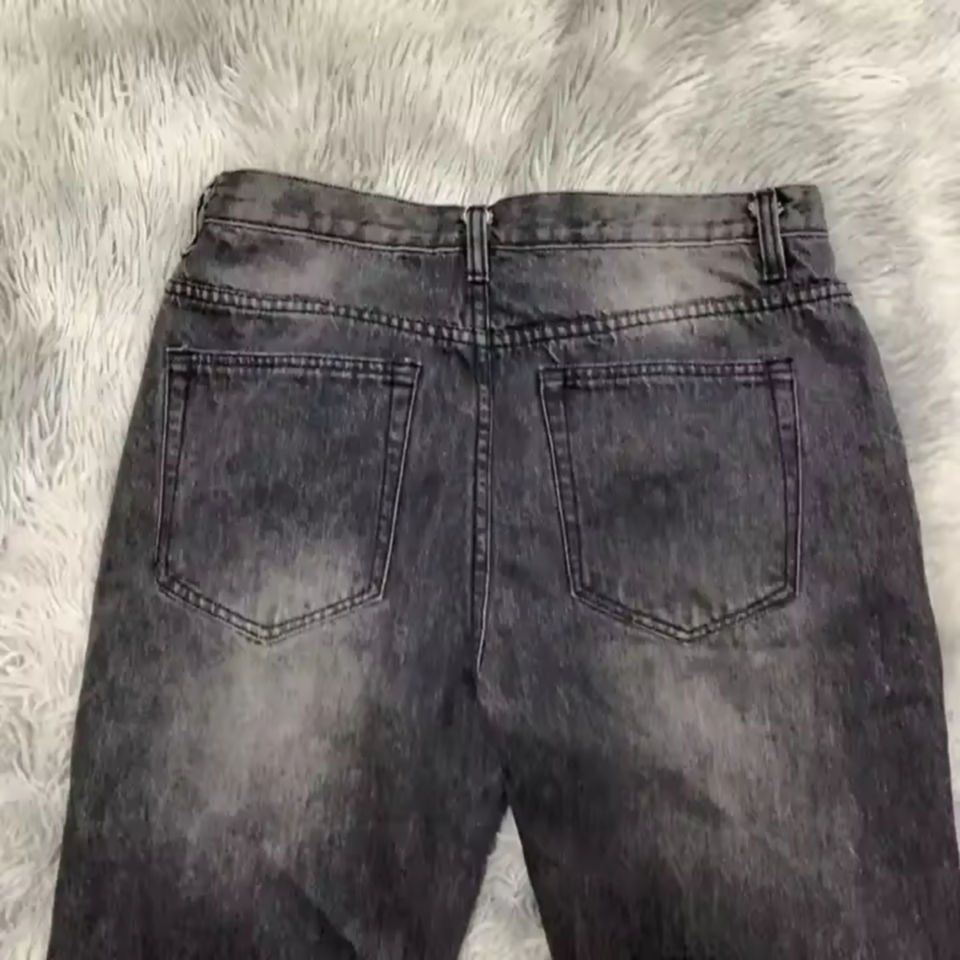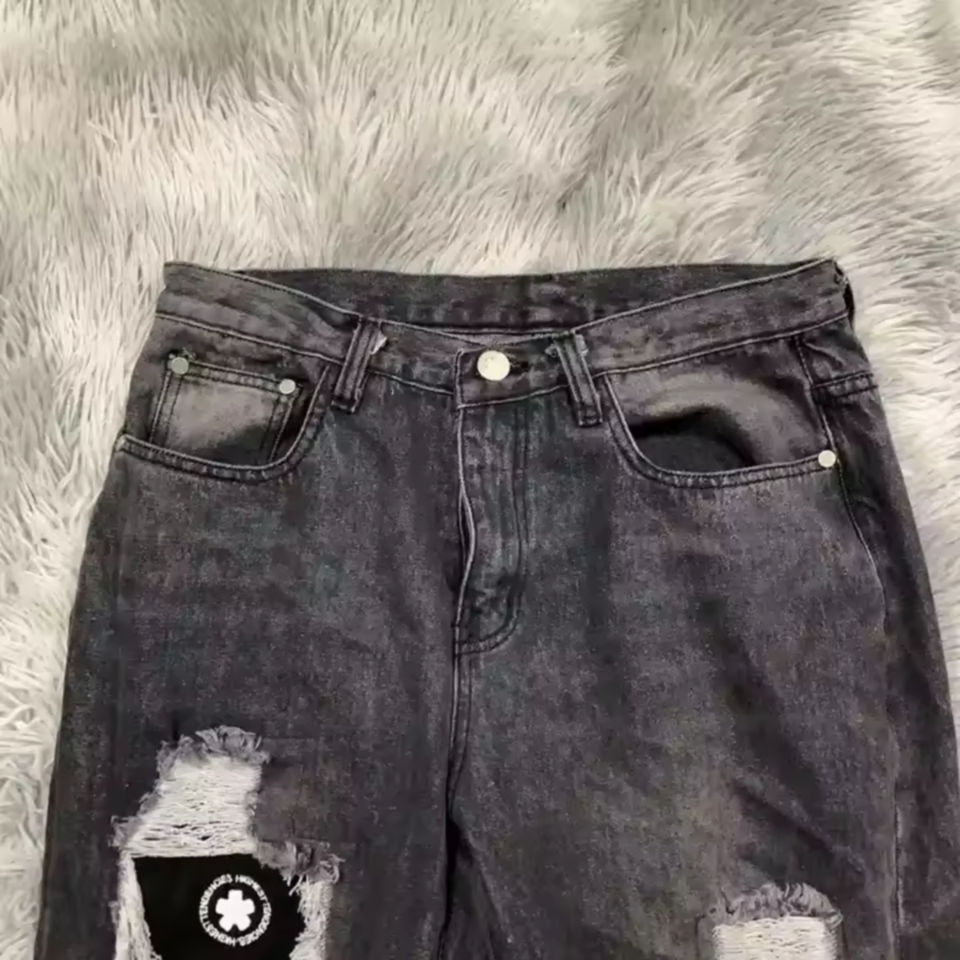 DENIMGUYS, pantalones vaqueros rasgados de talla grande para hombre, parche personalizado, estilo callejero Hip Hop, pantalones vaqueros desgastados holgados Vintage para hombre