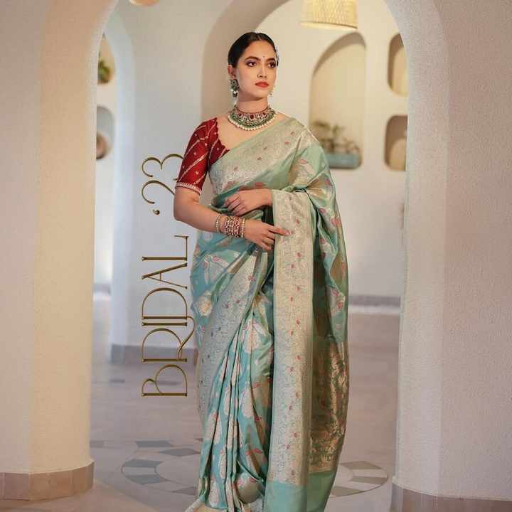 DISEÑADOR BANARASI SUAVE SEDA CON ORO ZARI TEJIDO TRABAJO SAREE CON BLUSA DESCOSADA VERDE MAR