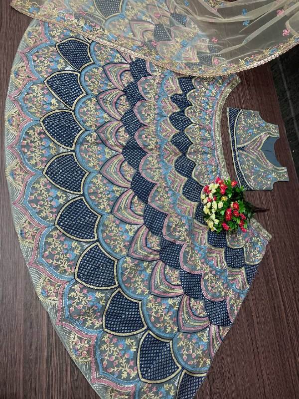 DISEÑADOR BOLLYWOOD WEAR HEAVY SOFT NET CHINE SEQUNCE TRABAJO LEHENGAS CON HEAVY NET DUPATTA
