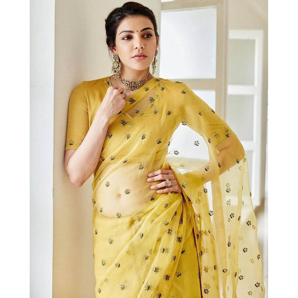 DISEÑADOR CHANDERI HILO DE SEDA CON SECUENCIA TRABAJO SAREE CON BLUSA SIN COSTAR AMARILLO