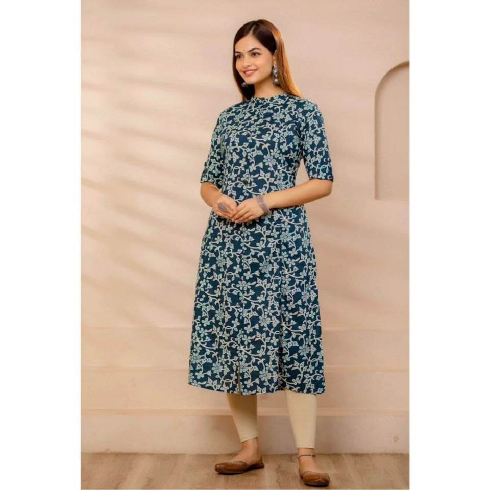 DISEÑADOR ESTAMPADO ALGODÓN TRABAJA SOLO KURTI AZUL
