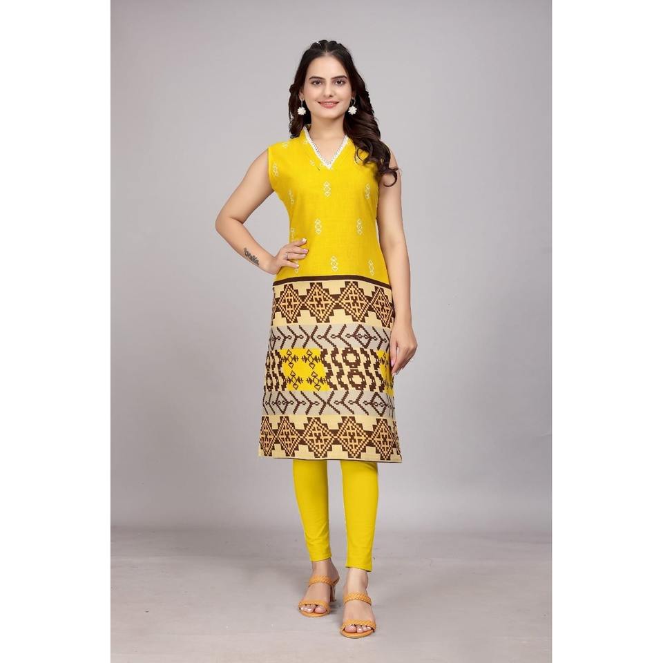 DISEÑADOR ALGODÓN ESTAMPADO TRABAJO SOLO KURTI AMARILLO