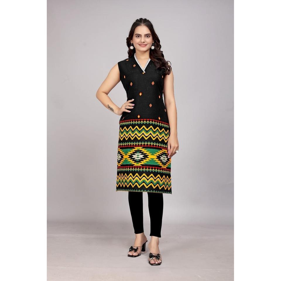 ESTAMPADO DE ALGODÓN DE DISEÑADOR TRABAJA SOLO KURTI NEGRO