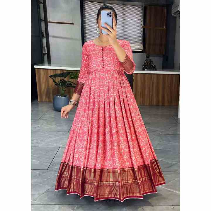 DISEÑADOR ALGODÓN SEDA KALAMKARI ESTAMPADO TRABAJO SOLO VESTIDO MELOCOTÓN