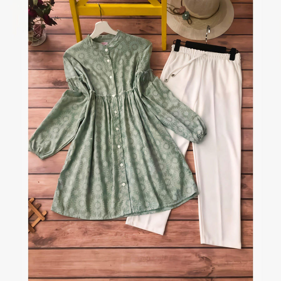 DISEÑADOR IMPRESIÓN DIGITAL TRABAJO KURTI CON PALAZZO VERDE MAR