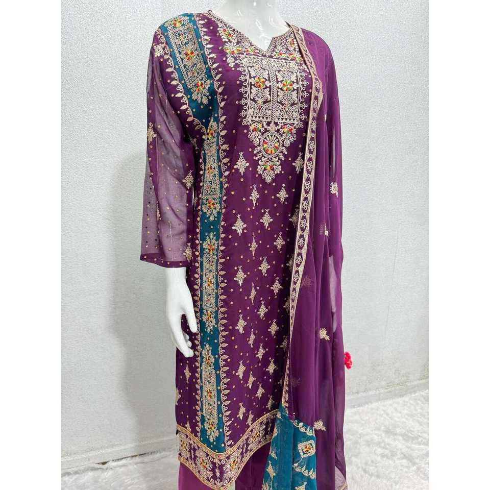 DISEÑADOR GEORGETTE DIAMOND TRABAJO A MANO TOP BOTTOM CON DUPATTA WINE