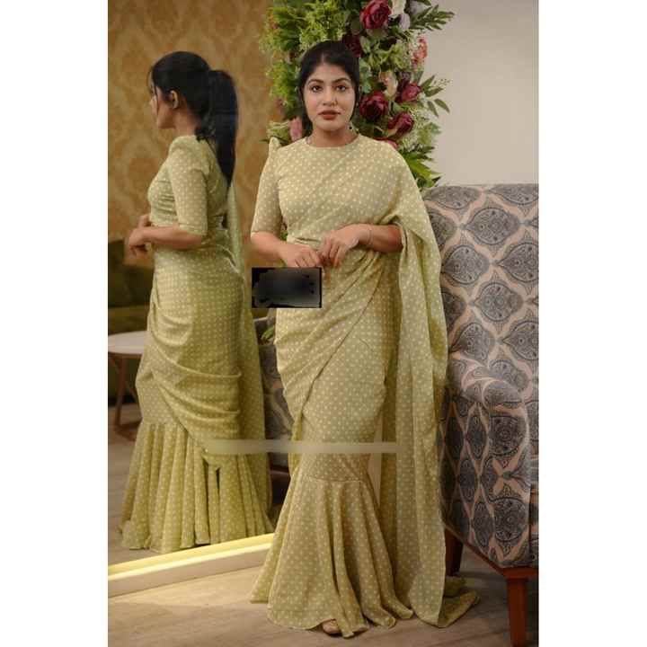 DISEÑADOR GEORGETTE ESTAMPADO DIGITAL CON VESTIDO CON VOLANTES SAREE VERDE MAR