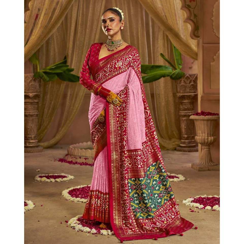 DISEÑADOR GEORGETTE BORDADO FOIL PRINT SAREE CON BLUSA DESCOSADA BEBÉ ROSA
