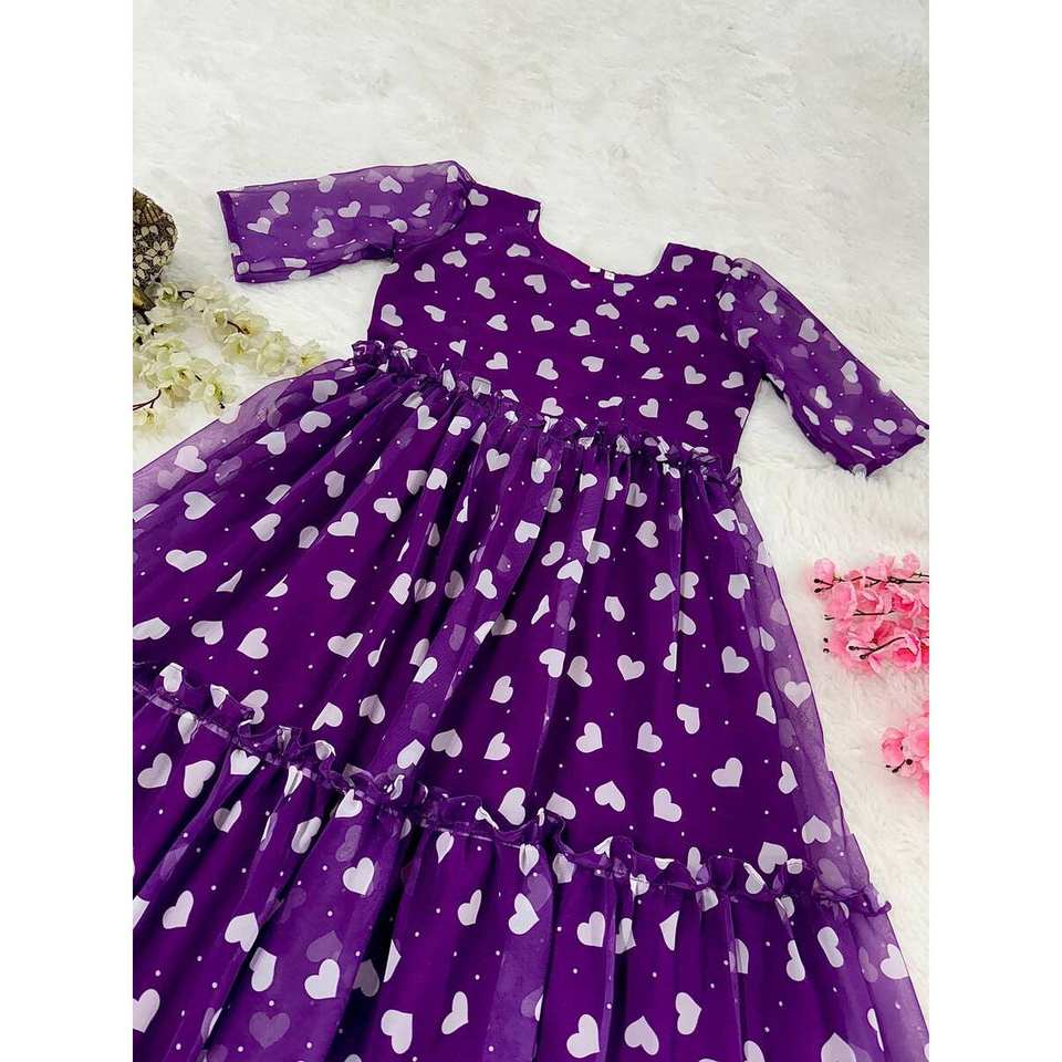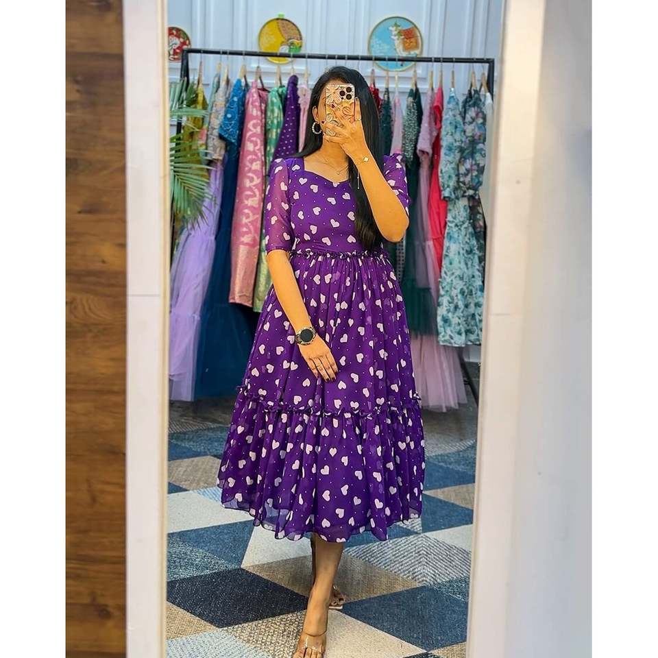 Vestido de una Pieza con Estampado de Corazón de Diseñador, Color Morado