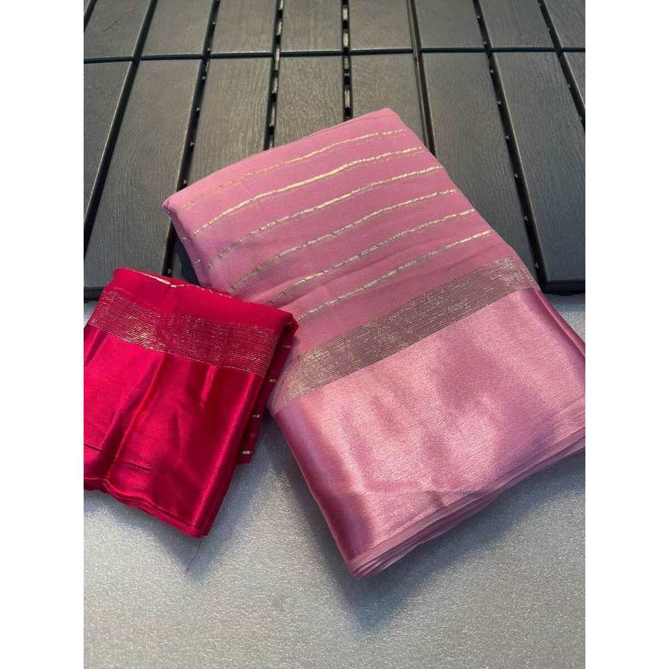 DISEÑADOR GEORGETTE ZARI TRABAJO SAREE CON BLUSA DESCOSTADA ROSA