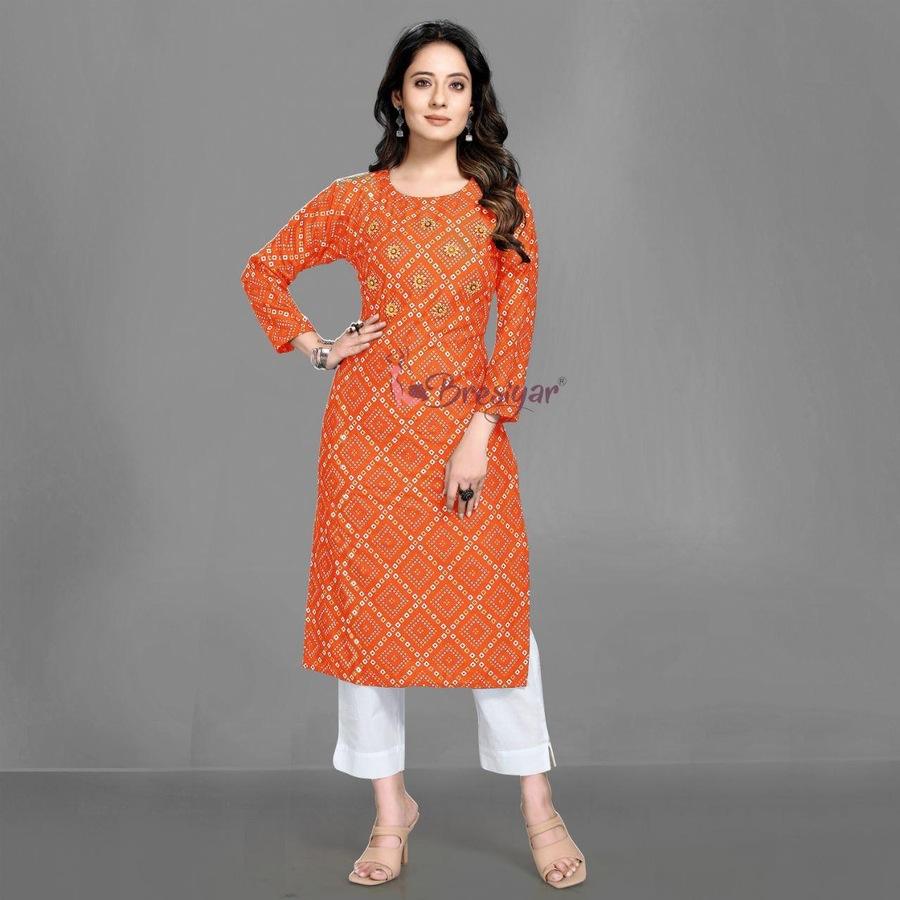 DISEÑADOR HEAVY RAYON BADHANI ESTAMPADO TRABAJO LISTO PARA LLEVAR SOLO KURTI NARANJA