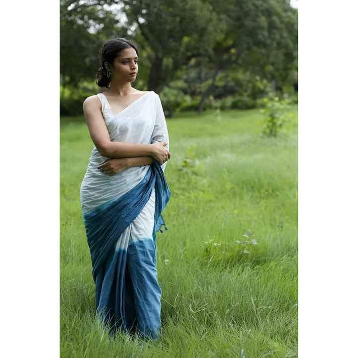 DISEÑADOR LINO ALGODÓN SEDA BATIK SOMBRADO DIGITAL IMPRESO SAREE CON BLUSA SIN COSTAR RAMA