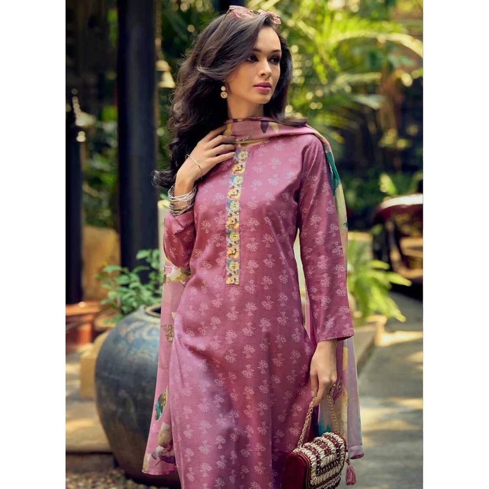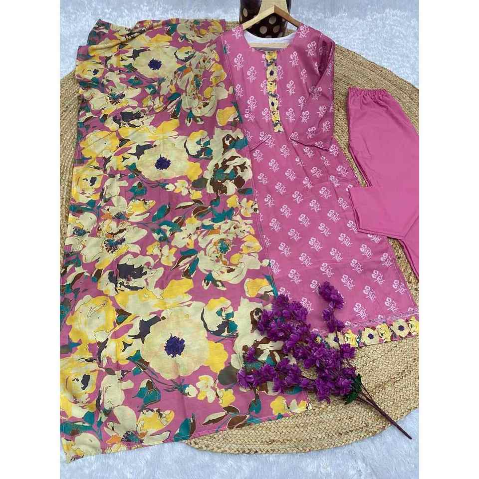 PANTALÓN DE TRABAJO DE IMPRESIÓN DIGITAL DE MUSELINA DE DISEÑADOR CON DUPATTA PINK
