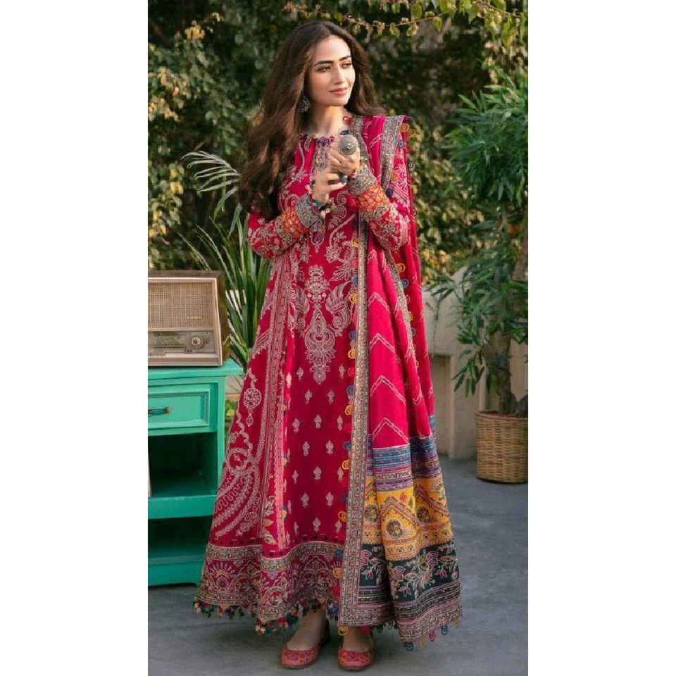 DISEÑADOR MUSELINA DIGITAL PRINT TRABAJO TOP CON DUPATTA ROJO