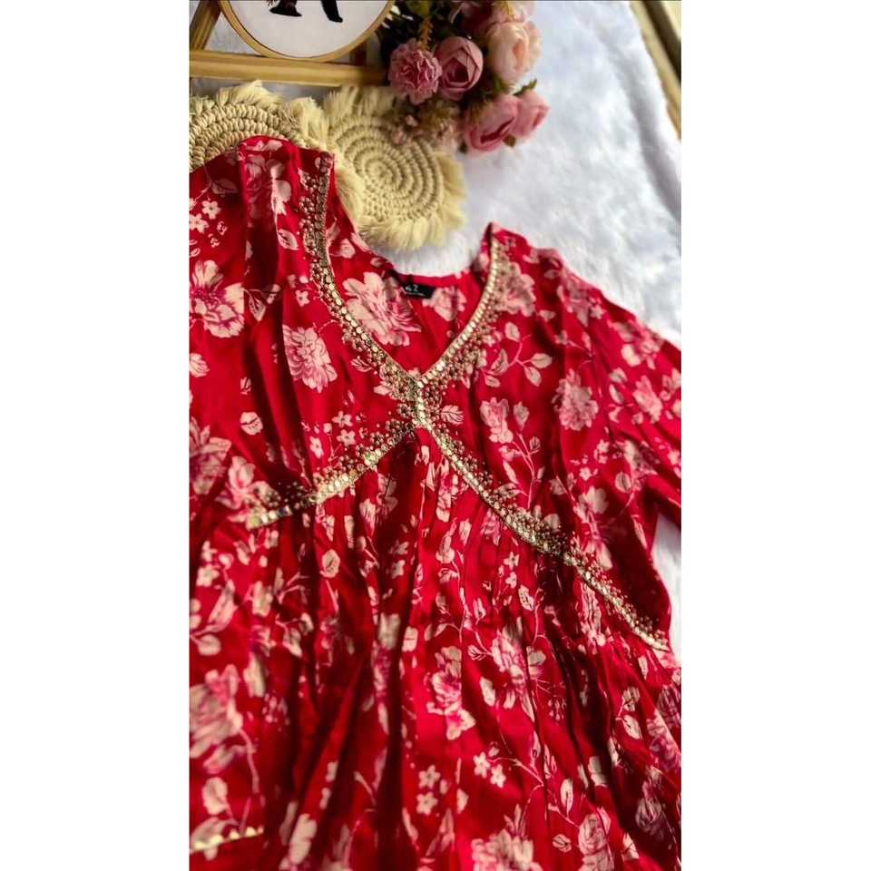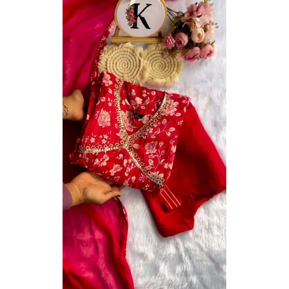 DISEÑADOR MUSELINA SEDA HECHO A MANO IMPRESO DIGITAL ALIA CUT GOWN BOTTOM CON DUPATTA ROJO