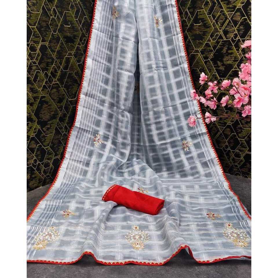 DISEÑADOR ORGANZA BUTTA TRABAJO SAREE CON UNSTITCEHD BLUSA GRIS