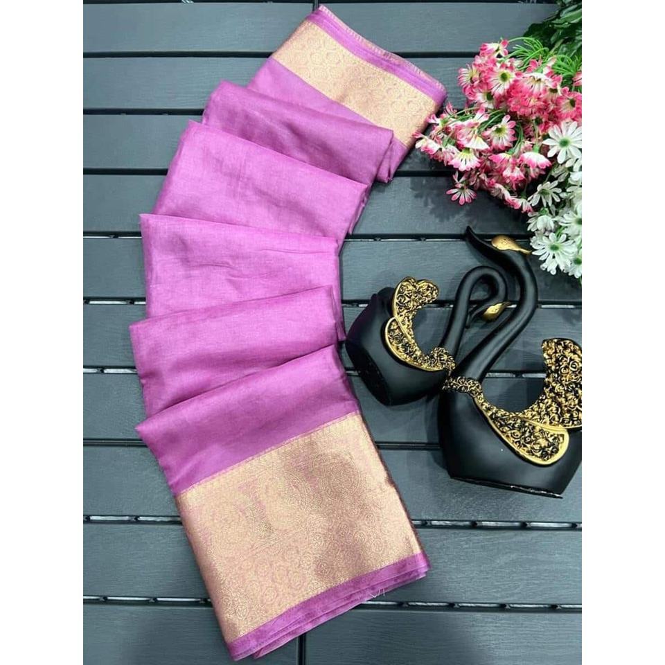 DISEÑADOR ORGANZA ZARI TRABAJO SAREE CON BLUSA SIN COSTAR MORADO