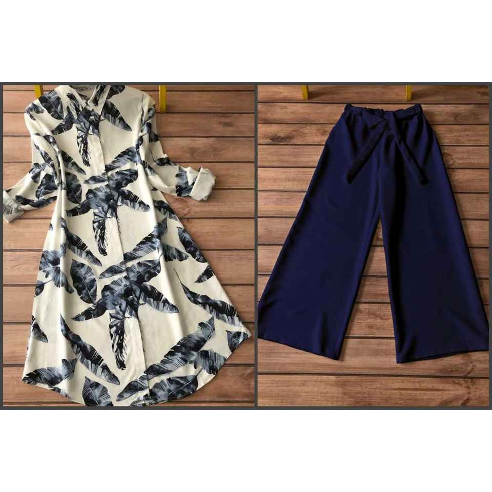 DISEÑADOR RAYON DIGITAL PRINT TRABAJO TOP PALAZZO AZUL MARINO