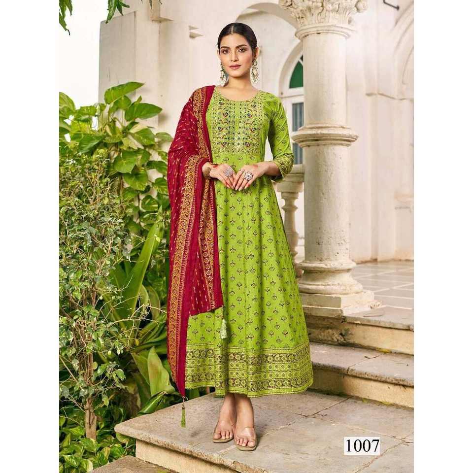 BATA DE TRABAJO CON BORDADO DE RAYÓN DE DISEÑADOR CON DUPATTA LORO VERDE