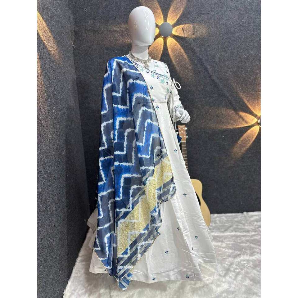 PANTALÓN DE BATA DE TRABAJO BORDADO DE ALGODÓN ROMANO DE DISEÑADOR CON DUPATTA BLANCO
