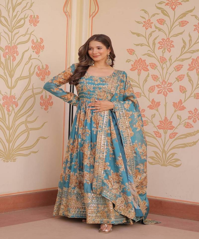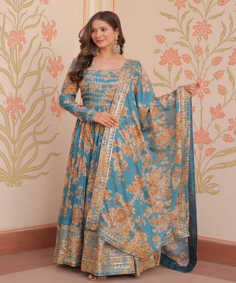 VESTIDO DE TRABAJO DE SECUENCIA BORDADA CON IMPRESIÓN DIGITAL DE SECUENCIA DE DISEÑADOR RUSO DUPATTA DESPIECE DE FIESTA PRECIO AL POR MAYOR ROPA ÉTNICA LAVABLE