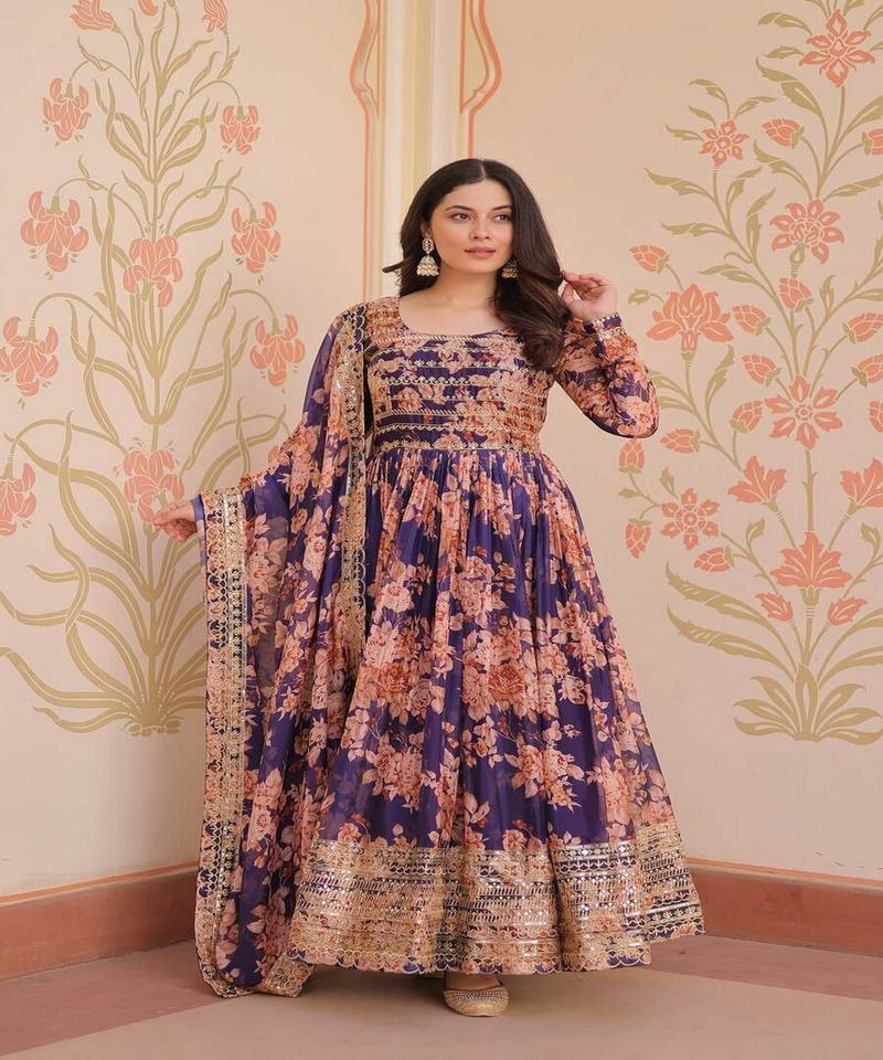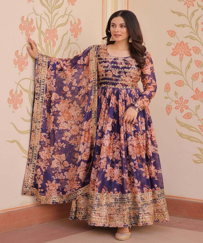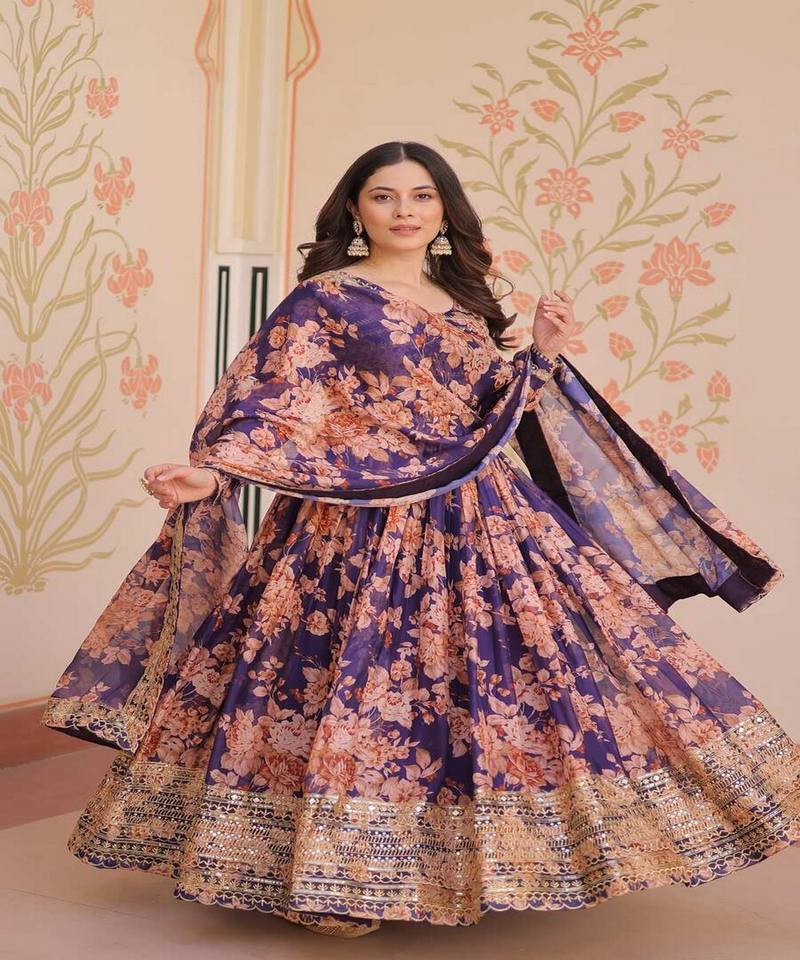 ESTAMPADO DIGITAL DE SEDA RUSA DE DISEÑADOR CON VESTIDO DE TRABAJO DE SECUENCIA BORDADA CON DUPATTA FESTIVA PRECIO AL POR MAYOR ROPA ÉTNICA