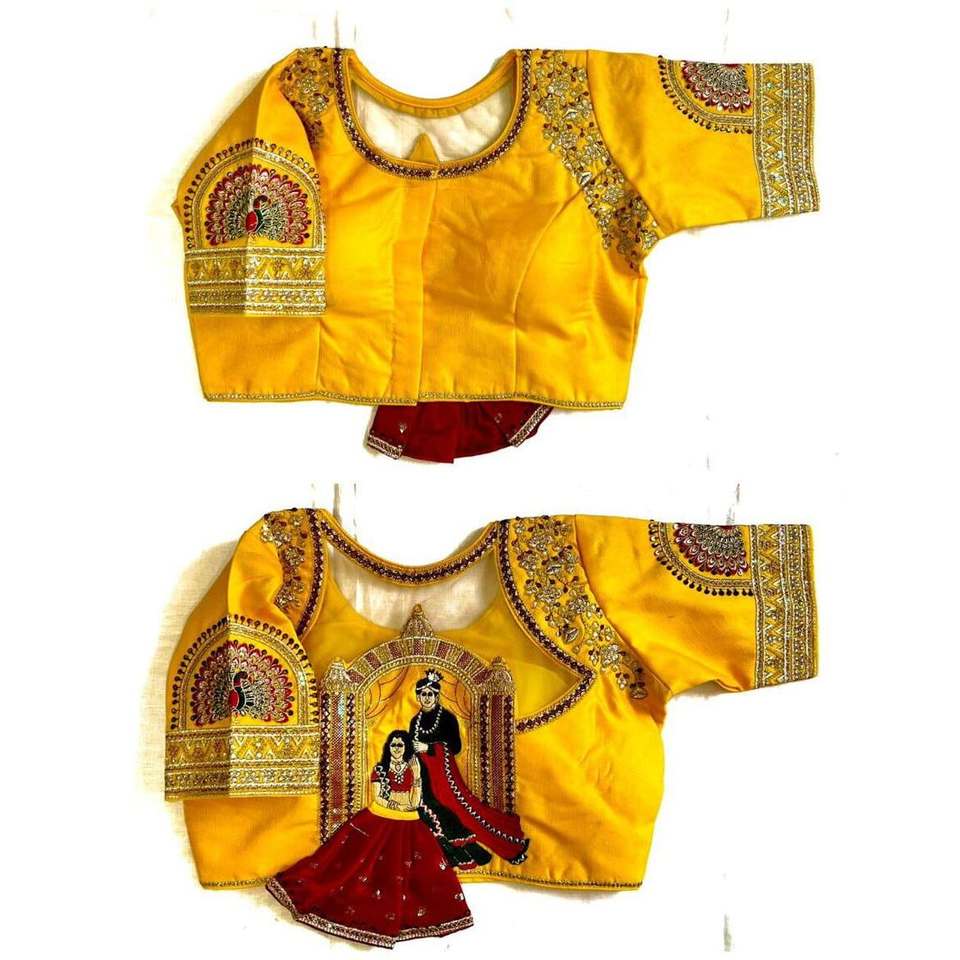 SECUENCIA DE DOBLE CODIFICACIÓN DE SECUENCIA DE DISEÑADOR BRILLANTE TRABAJO CON HILO PESADO MANGA DE TRABAJO LISTO PARA USAR BLUSA DE TEMPORADA DE MATRIMONIO AMARILLO