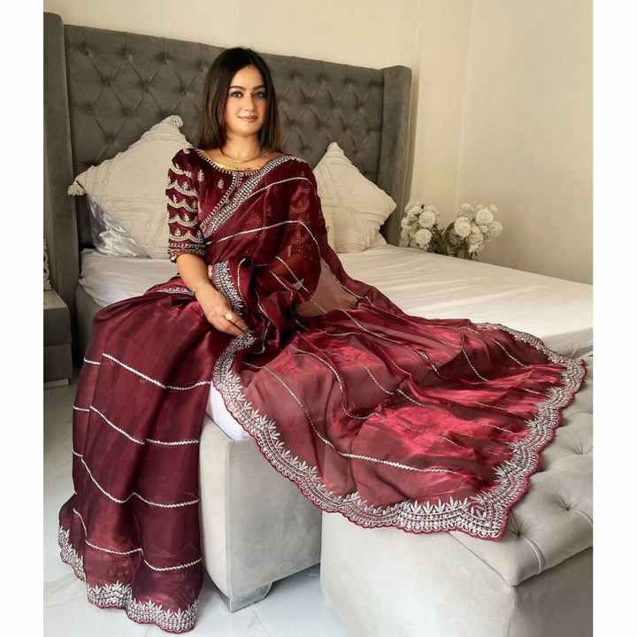 SECUENCIA DE DISEÑADOR TRABAJO SAREE CON BLUSA COSTADA MAROON
