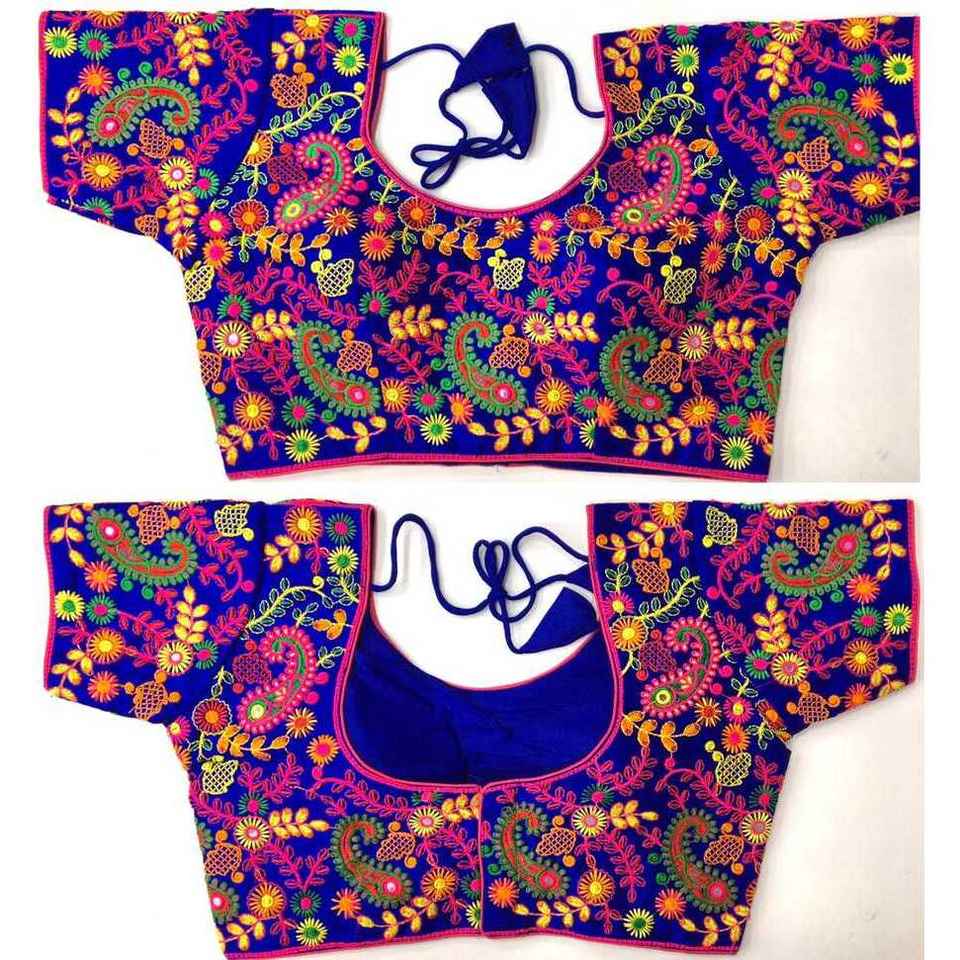 HOJA DE HILO DE SEDA DE DISEÑADOR CON TRABAJO DE ESPEJO BLUSA LISTA PARA LLEVAR AZUL