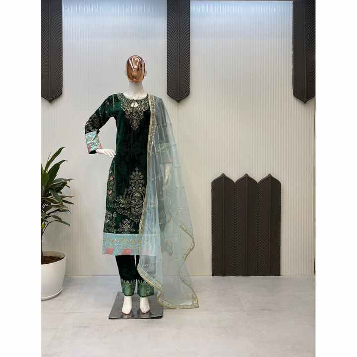 SECUENCIA DE TERCIOPELO DE DISEÑADOR BORDADO TRABAJO SUPERIOR CON DUPATTA VERDE