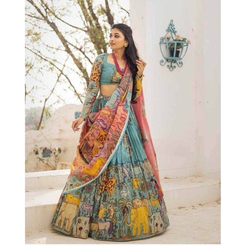 DISEÑADOR VICHITRA SILK DIGITAL PRINT TRABAJO LEHENGA CHOLI CON DUPATTA SEA GREEN