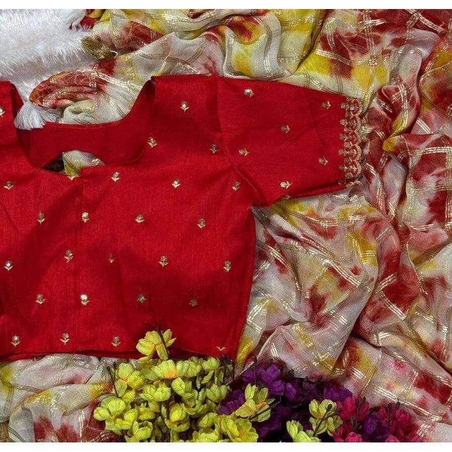 DISEÑADOR VISCOSA GEORGETTE CHEX CON SABURI WORK SAREE CON BLUSA SIN COSTURA ROJA