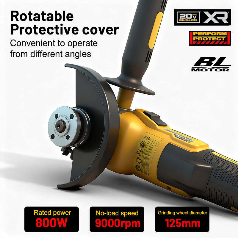 Amoladora Angular Inalámbrica DEWALT de 125 mm con Motor sin Escobillas de Iones de Litio, Herramienta Eléctrica Compacta y Portátil para Reparaciones en el Hogar y la Construcción
