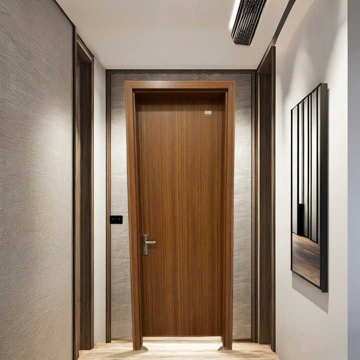 DEWOO Puertas interiores de WPC de diseño moderno para hotel y dormitorio Superficie acabada de apertura manual de PVC impermeable
