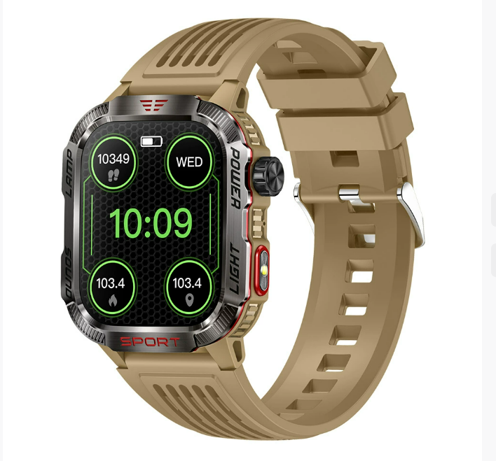 Reloj Inteligente DF PGD WATCH con Ranura para Tarjeta SIM, Linterna, Cámara, Pulseras Inteligentes, Reloj Táctico Color Caqui Desierto