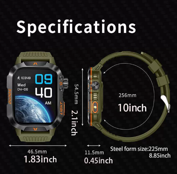 Reloj Inteligente DF TAC Rectangular Negro Verde Azul Camuflaje Wooods Camo SS con Correa de Silicona para Actividades al Aire Libre 600mAH HT26