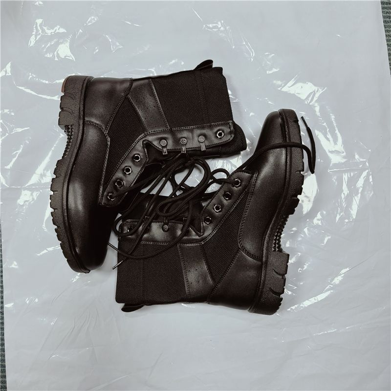 DF1103 -2 Botas de entrenamiento para guardias de seguridad, nueva versión, microfibra negra, sin logo, venta al por mayor.