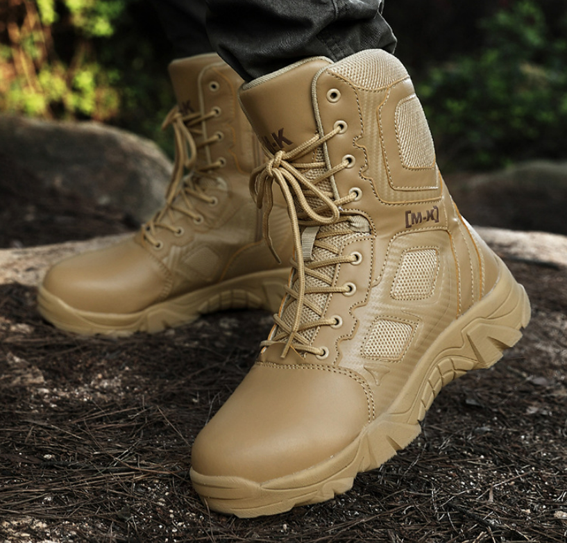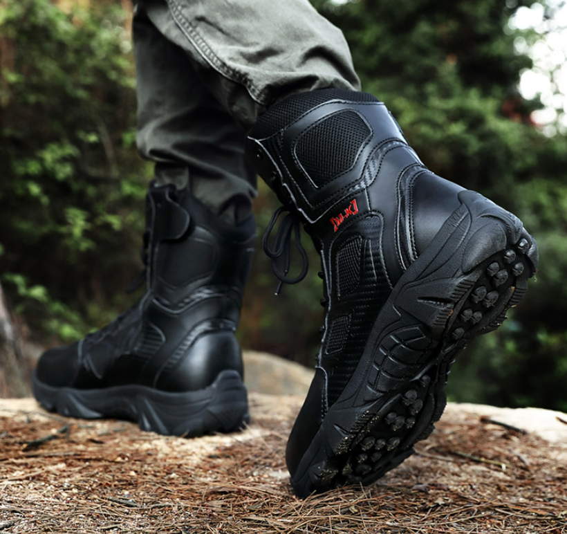 Botas Tácticas DFS06 Anti-Impacto de Cuero Vacuno de 9 Pulgadas para Verano, con Malla Transpirable y Ventilación
