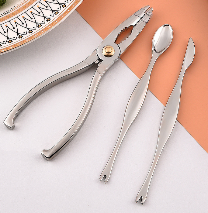 DFT0319 Venta Directa de Fábrica en Stock, Juego de 8 Piezas de Aleación de Zinc, Herramienta Doméstica para Comer Cangrejo, Pinza y Aguja, Utensilio para Mariscos