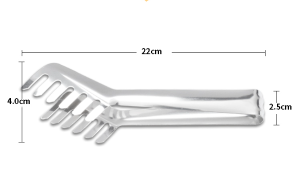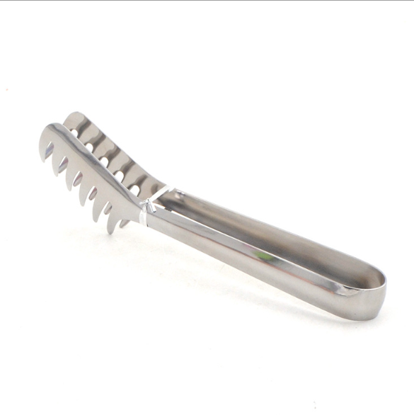 Pinzas para Comida de Buffet DFT07-3, Pinzas para Espaguetis de Acero Inoxidable con 6 Dientes Ranurados