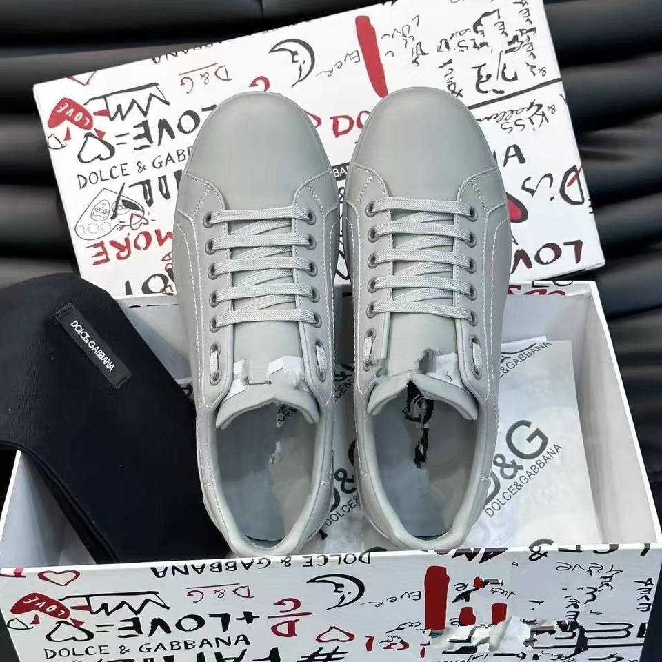 Zapatillas DG de Caña Baja para Hombre y Mujer en Piel de Becerro Napa Blanca, Estilo Urbano Portofino Dolce & Gabbana con Suela de Goma